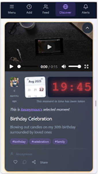 O Minbit também permite que os usuários organizem seus momentos em um mapa interativo, adicionando localizações e filtrando conteúdos públicos de todo o mundo. Com opções de privacidade flexíveis, como compartilhamento público, privado ou restrito, os usuários têm controle total sobre quem pode ver suas memórias. O aplicativo suporta a adição de fotos e vídeos, tornando cada momento ainda mais memorável e ajudando a construir uma linha do tempo eterna.